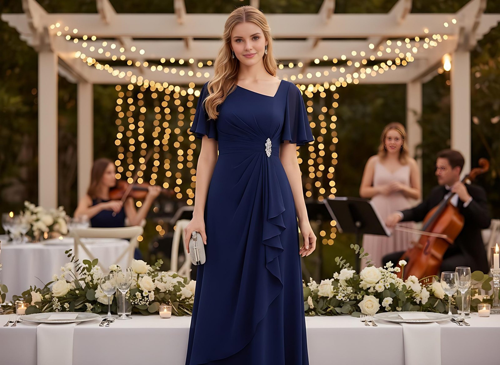 Lightweight chiffon feels soft and breathable. Flowy, elegant, and comfortable all day.